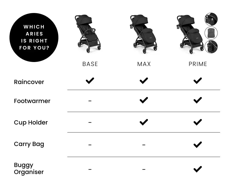 Suitable from birth to 22kg (approx. 4 years), Aries features a roomy seat, adjustable leg rest, and multi-position recline to keep little ones comfy as they grow.