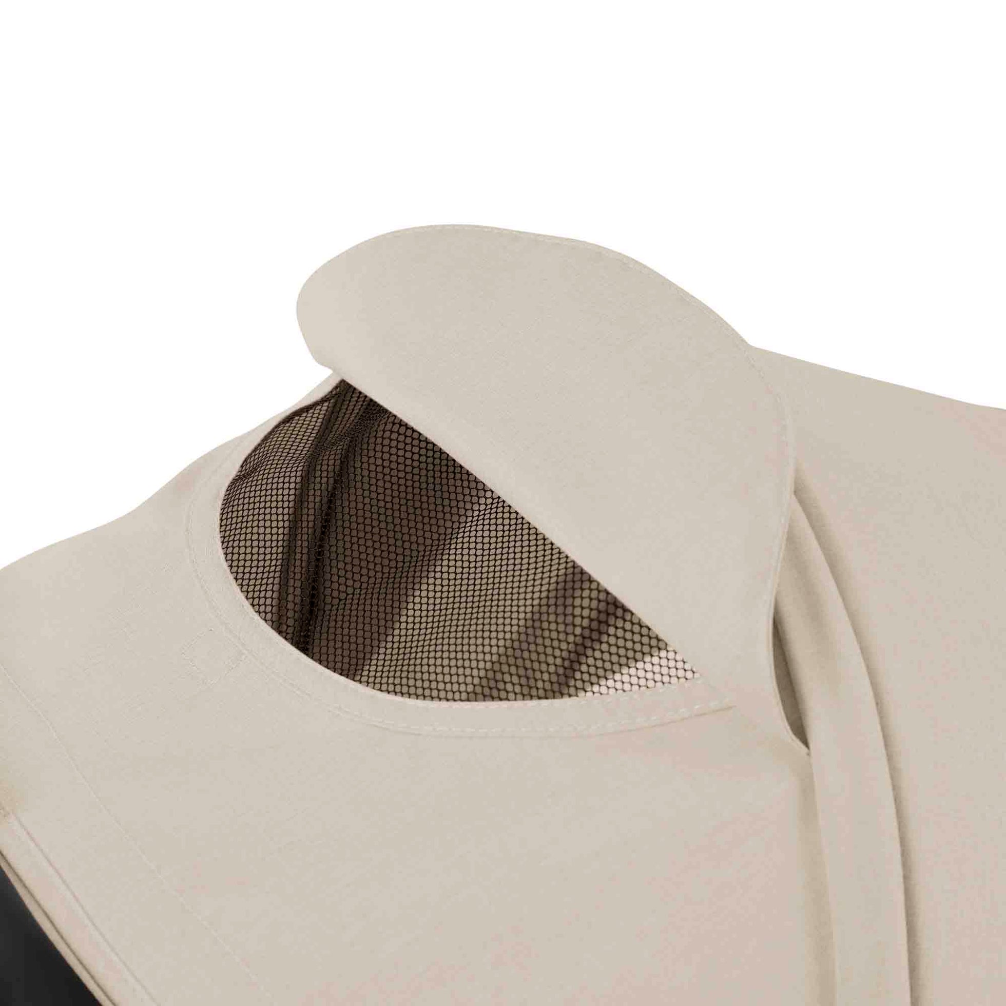 - Extendable hood with pop-out sun visor and viewing window