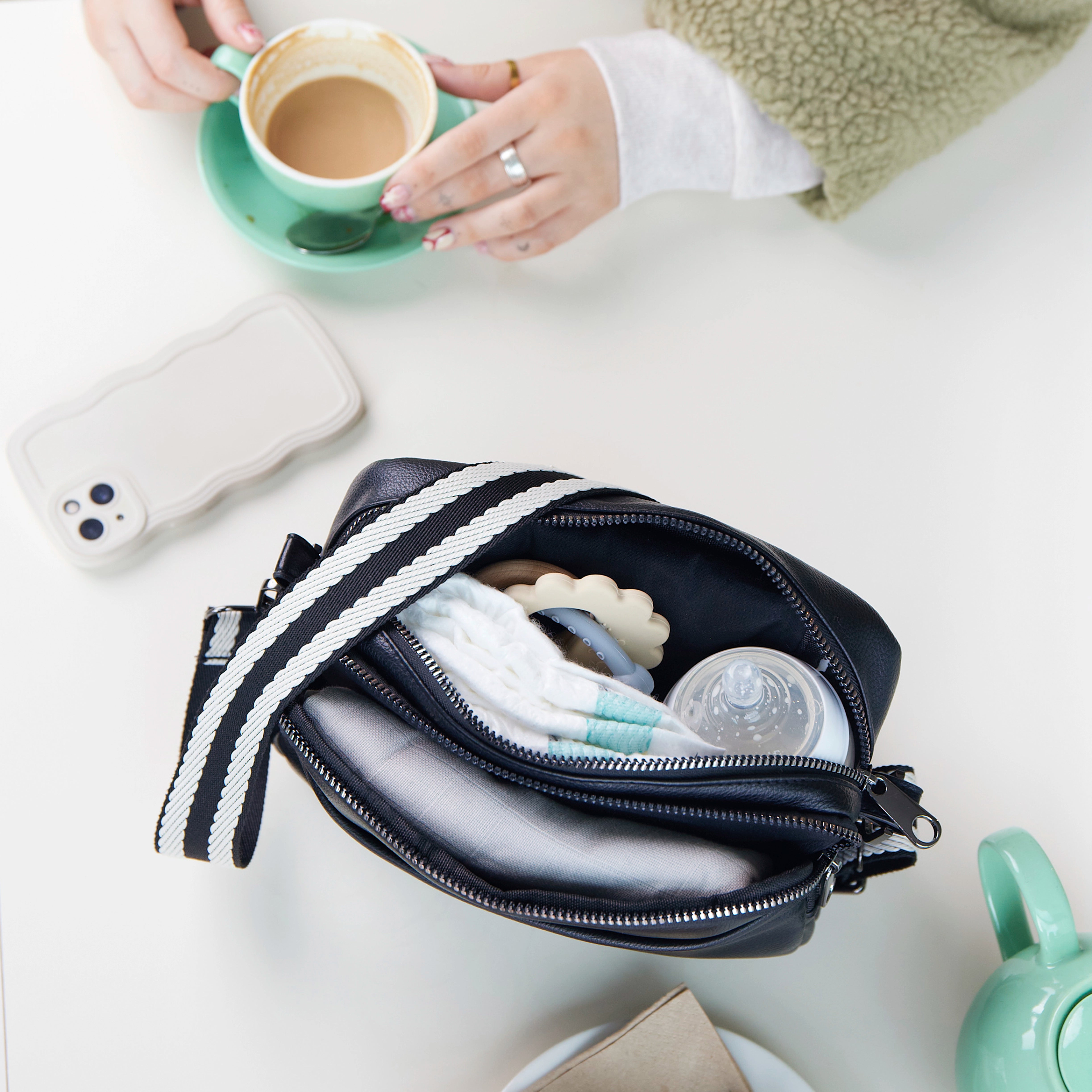 - Stylish cross-body changing bag included