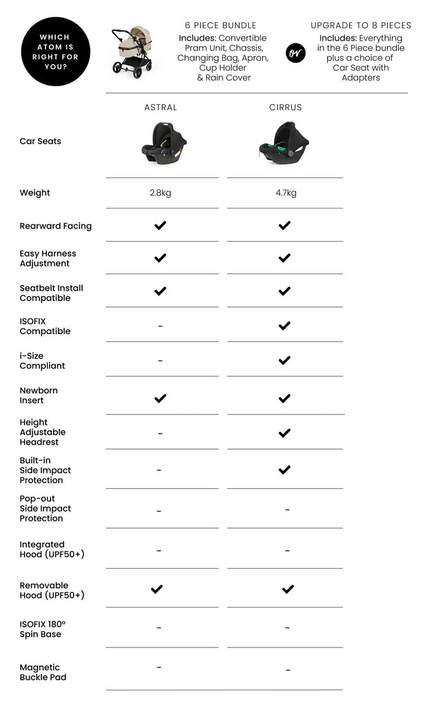 Designed with simplicity and ease at its heart, the Atom Pram is the perfect choice for families looking for an effortless travel system.
