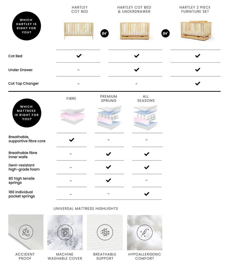 You can purchase the Hartley Classic Cot & Under Drawer with a compatible mattress. We have the following options: