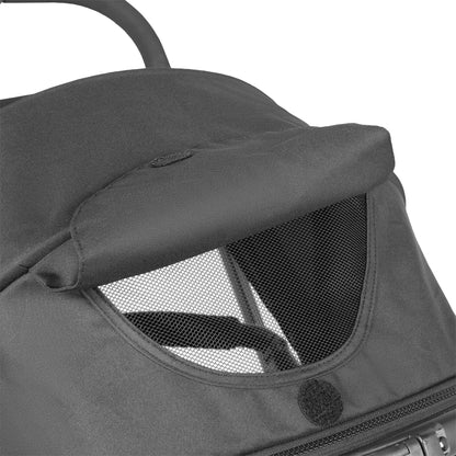 - Hood with UPF 50+ sun protection, pop-out sun visor and viewing window