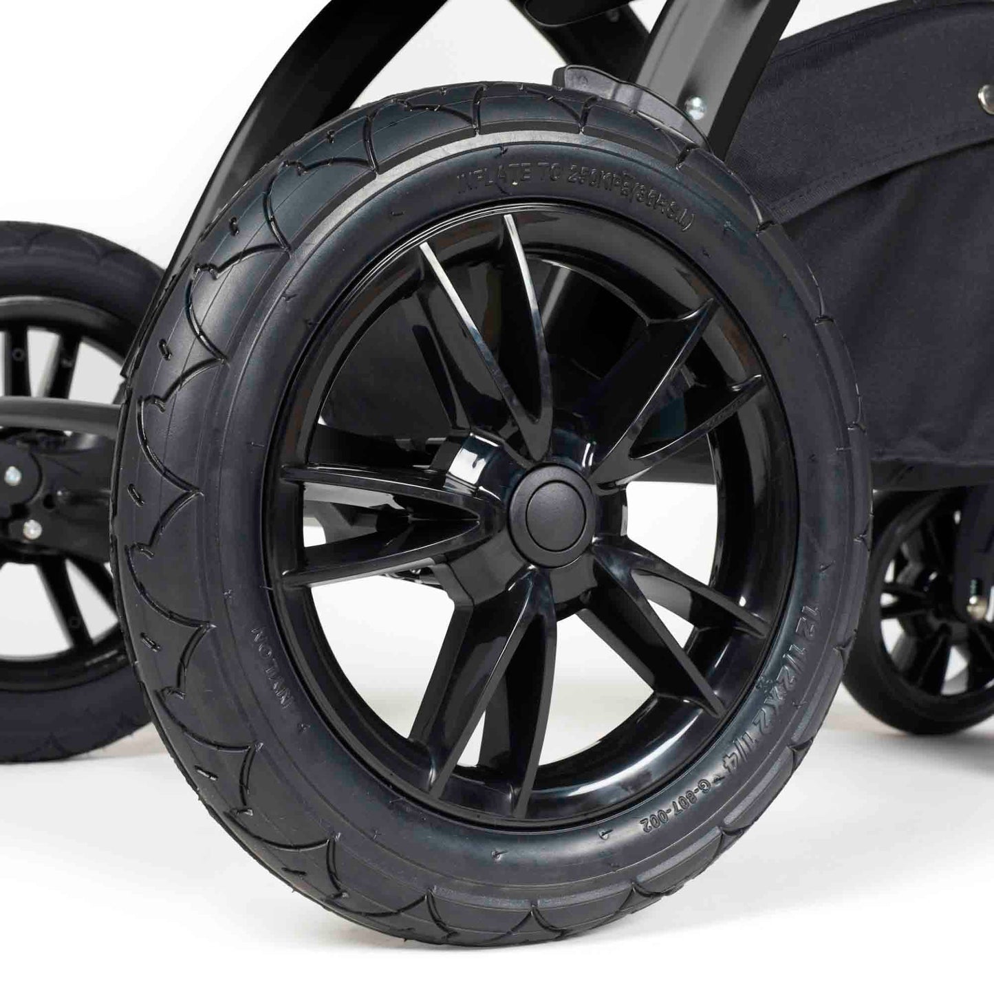 The Stomp Luxe features durable, puncture proof, easy-to-remove and clean wheels designed to tackle a variety of terrains, ensuring a smooth and comfortable ride wherever you go